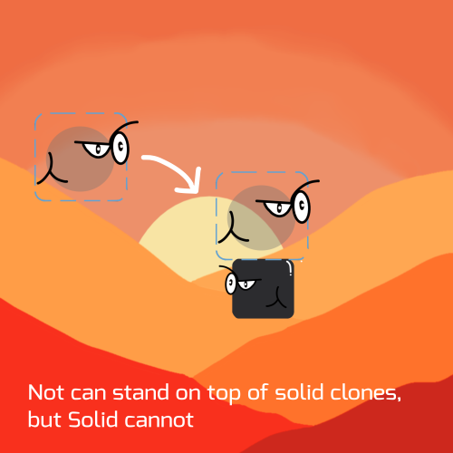 Up or 'W' keys :- Drops a Solid clone (pairs with the Not state for extra platforms!)