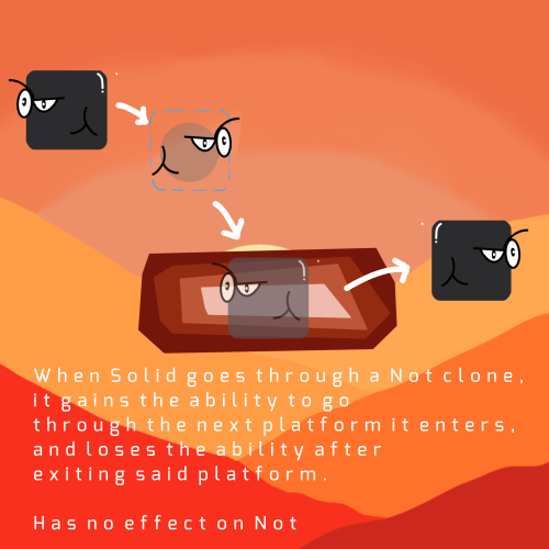 Down or 'S' keys :- Drops a Not clone (pairs with the Solid state for phase through platforms!)